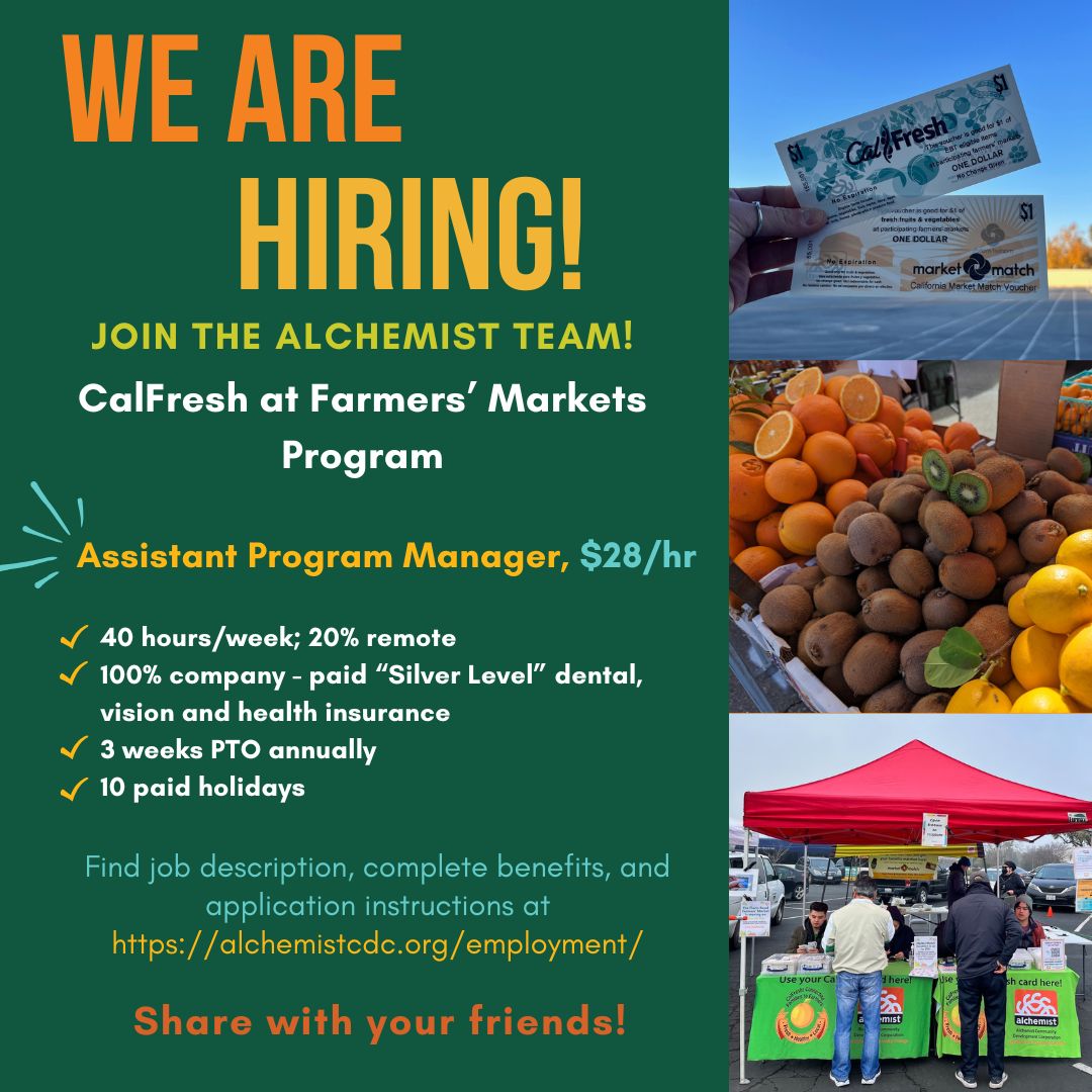 To Apply: Fill out the application form linked at https://alchemistcdc.org/employment/ and submit with a resume and cover letter.